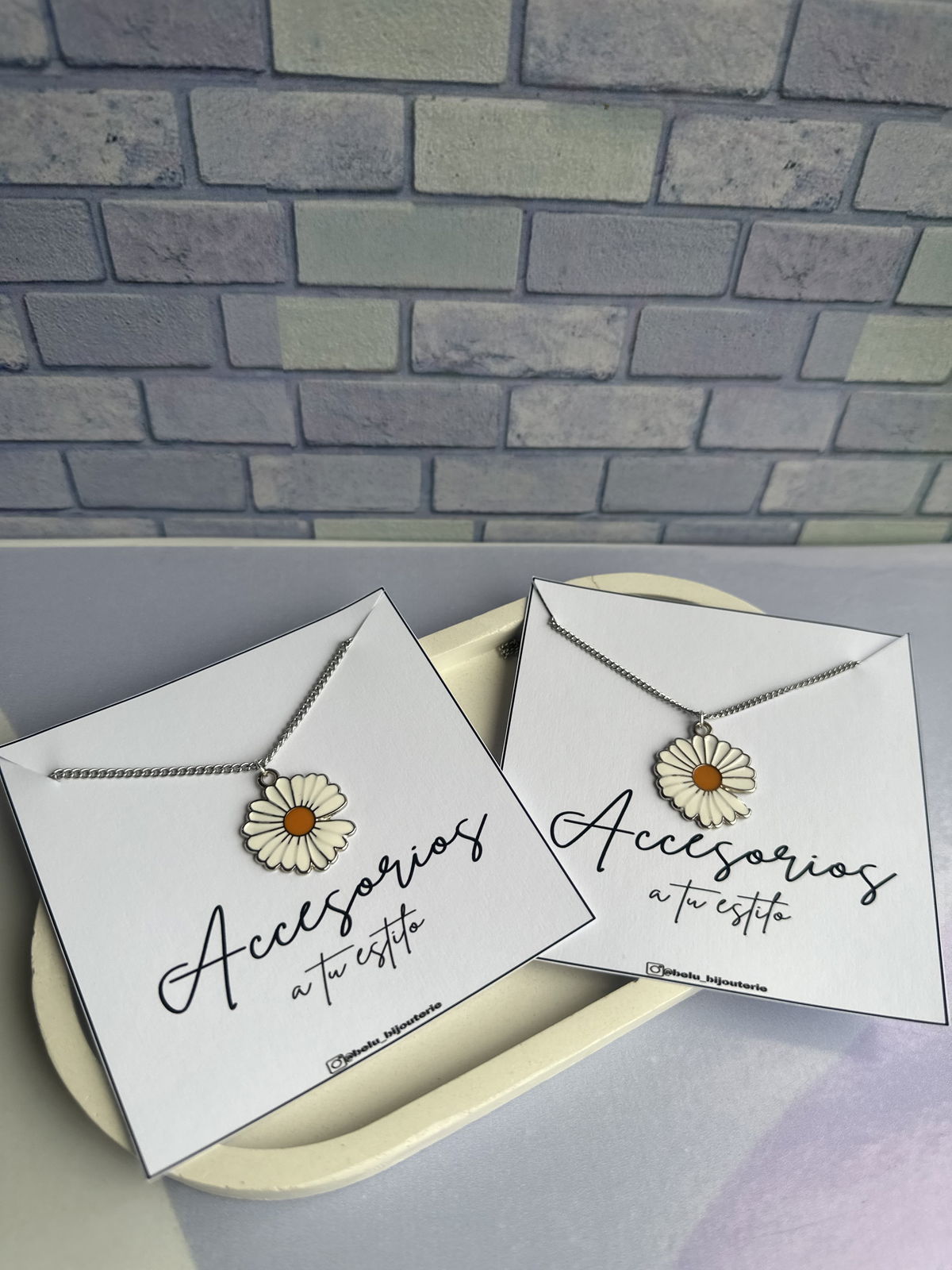 •Cadenita de acero quirúrgico con dije esmaltado de margarita